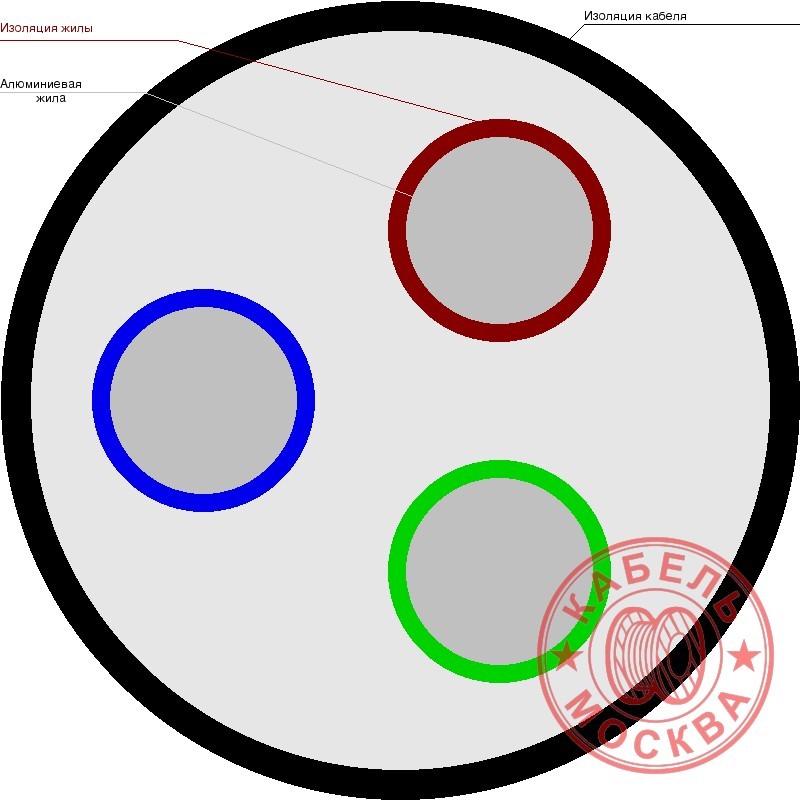 ААШВ-10 3х150 - кабель на основе трёх алюминиевых жил. Устанавливается внутри помещений, под землю, в шахтах без газа и пыли.