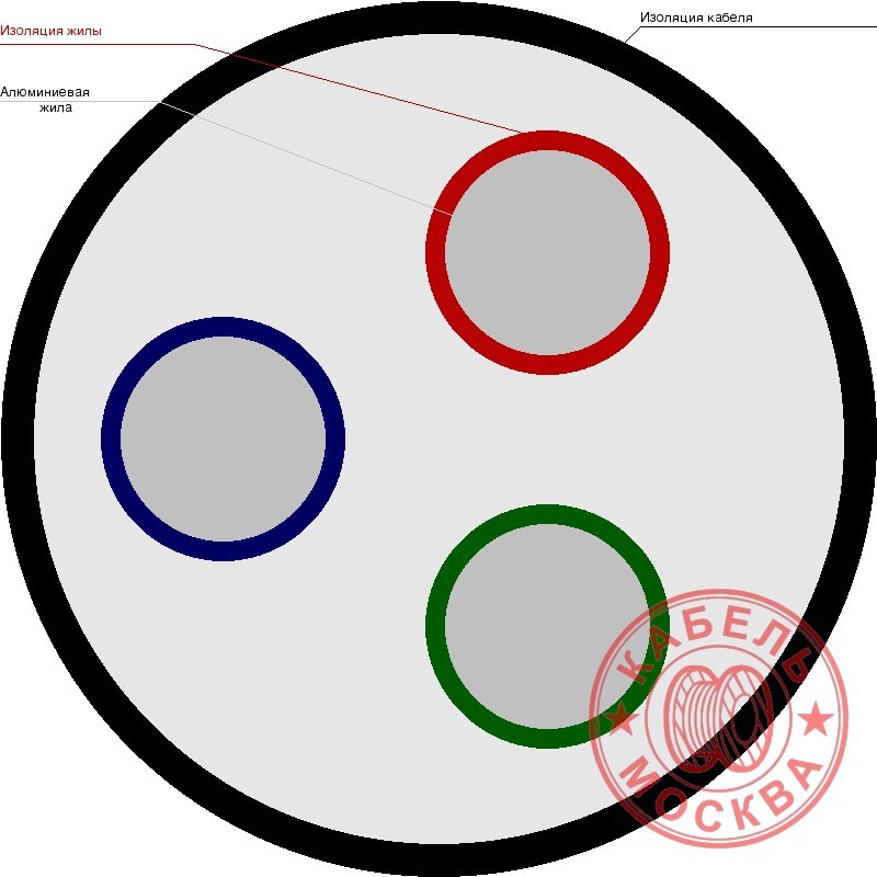 АКВВГ 3х2,5 - трёхжильный алюминиевый кабель. Прокладывается в каналах, туннелях, производственных помещениях. Также работает на открытом воздухе.