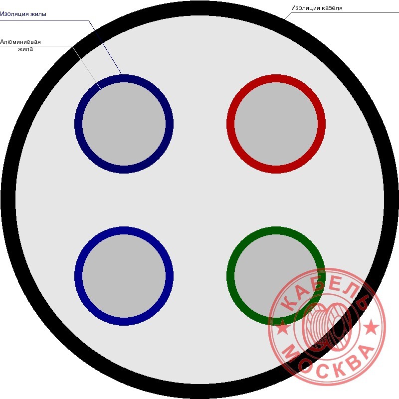 Силовой кабель АВВГнг-LS 4х50 с ПВХ изоляцией отличается виниловой изоляцией, которая устойчива к щелочным, кислотным, минеральным и химическим воздействиям, низкой степени горючести. Силовой кабель представляет следующую структуру: алюминиевые однопроволочные или многопроволочные токопроводящие круглые или секторной формы жилы, которые изолируются цветным поливинилхлоридным пластикатом (голубой цвет у нулевых жил, желто-зеленый цвет у жилы заземления) и скручиваются (для 2ух-, 3х-, 4х-, 5ти-жильных кабелей). Двужильные кабели имеют жилы с одинаковым сечением. А в кабелях 3х-, 4х-, 5ти-жильных одна из жил имеет меньшее сечения (жила заземления или нулевая), в отличии от всех остальные жилы с одинаковым сечением. Сверху кабель покрывается поясной изоляцией из поливинилхлоридного пластиката низкой горючести и специальным заполнителем свободного межжильного пространства. Защитная бронь из стальных лент накладывается таким образом, чтобы ленты перекрывали друг друга, исключая свободные промежутки. Внешнее покрытие из поливинилхлоридного пластиката. Не распространяющий и не поддерживающий горения.