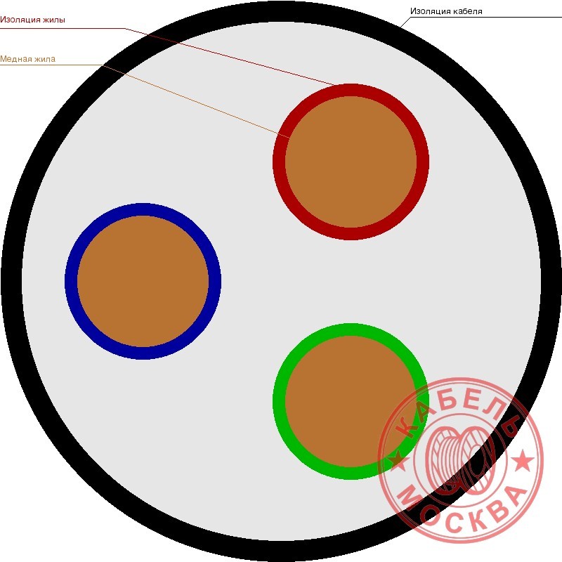 Силовой гибкий кабель КГН 3х4+1х4 представляет собой круглые гибкие многопроволочные жилы из меди, которые покрыты цветной резиновой оболочкой. Жилы скручиваются и покрываются тальком или синтетической пленкой. Внешнее покрытие из резины является совокупностью установленных толщин изоляций и выполняет защитную функцию, устойчивой к холодным климатическим условиям, не распространяет горение.