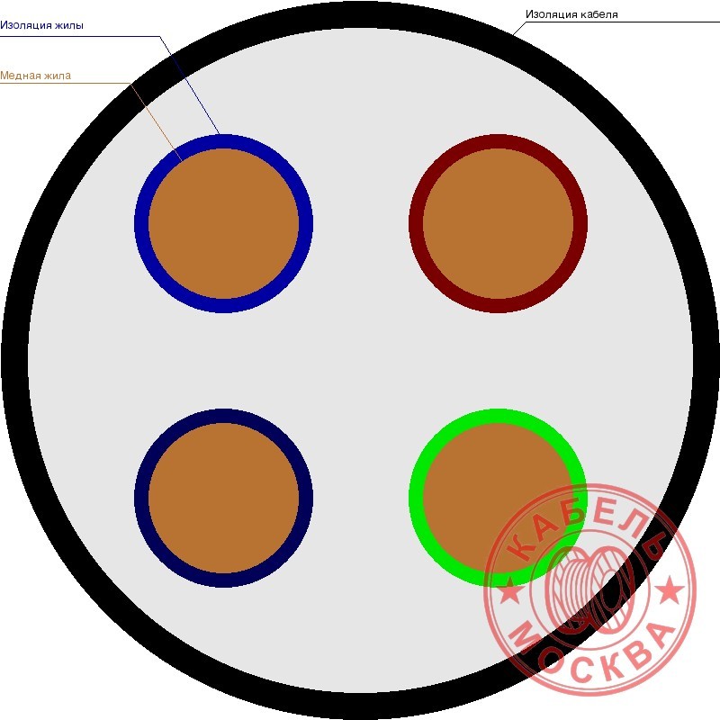 Силовой гибкий кабель КГН 4х1,5 представляет собой круглые гибкие многопроволочные жилы из меди, которые покрыты цветной резиновой оболочкой. Жилы скручиваются и покрываются тальком или синтетической пленкой. Внешнее покрытие из резины является совокупностью установленных толщин изоляций и выполняет защитную функцию, устойчивой к холодным климатическим условиям, не распространяет горение.