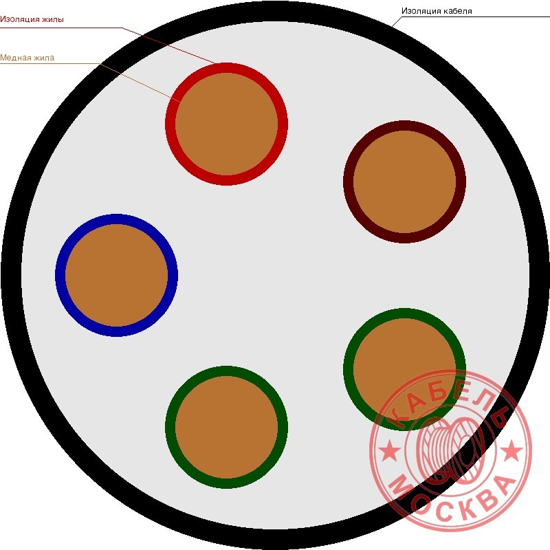 КГН 5х1 - кабель с пятью токоведущими элементами. Устанавливается внутри и снаружи помещений. Водостойкий.