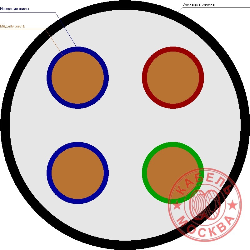 КВВ 4х6 - контрольный кабель в поливинилхлоридной изоляции. Имеет круглое сечение. Используется для присоединения к электросетям на напряжение 450 или 750 В.