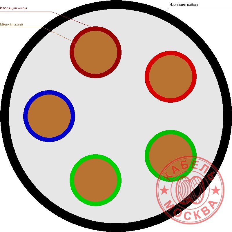 Силовой бронированный кабель ВББШВнг 5х550 с ПВХ изоляцией представляет следующую структуру: медные однопроволочные или многопроволочные токопроводящие круглые или секторной формы жилы, которые изолируются цветным поливинилхлоридным пластикатом (голубой цвет у нулевых жил, желто-зеленый цвет у жилы заземления) и скручиваются (для 2ух-, 3х-, 4х-, 5ти-жильных кабелей). Двужильные кабели имеют жилы с одинаковым сечением. А в кабелях 3х-, 4х-, 5ти-жильных одна из жил имеет меньшее сечения (жила заземления или нулевая), в отличии от всех остальные жилы с одинаковым сечением. Сверху кабель покрывается поясной изоляцией из поливинилхлоридного пластиката низкой горючести и специальным заполнителем свободного межжильного пространства. Защитная бронь из стальных лент накладывается таким образом, чтобы ленты перекрывали друг друга, исключая свободные промежутки. Внешнее покрытие из поливинилхлоридного пластиката низкой степени горючести и пожаро-, взрыво- безопасное.