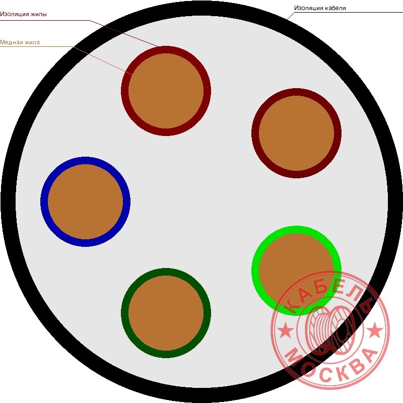 Силовой кабель ВВГнг-LS 5х6 с ПВХ изоляцией отличается виниловой изоляцией, которая устойчива к щелочным, кислотным, минеральным и химическим воздействиям, низкой степени горючести. Силовой кабель представляет следующую структуру: медные однопроволочные или многопроволочные токопроводящие круглые или секторной формы жилы, которые изолируются цветным поливинилхлоридным пластикатом (голубой цвет у нулевых жил, желто-зеленый цвет у жилы заземления) и скручиваются (для 2ух-, 3х-, 4х-, 5ти-жильных кабелей). Двужильные кабели имеют жилы с одинаковым сечением. А в кабелях 3х-, 4х-, 5ти-жильных одна из жил имеет меньшее сечения (жила заземления или нулевая), в отличии от всех остальные жилы с одинаковым сечением. Сверху кабель покрывается поясной изоляцией из поливинилхлоридного пластиката низкой горючести и специальным заполнителем свободного межжильного пространства. Защитная бронь из стальных лент накладывается таким образом, чтобы ленты перекрывали друг друга, исключая свободные промежутки. Внешнее покрытие из поливинилхлоридного пластиката низкой степени горючести и пожаро-, взрыво- безопасное.